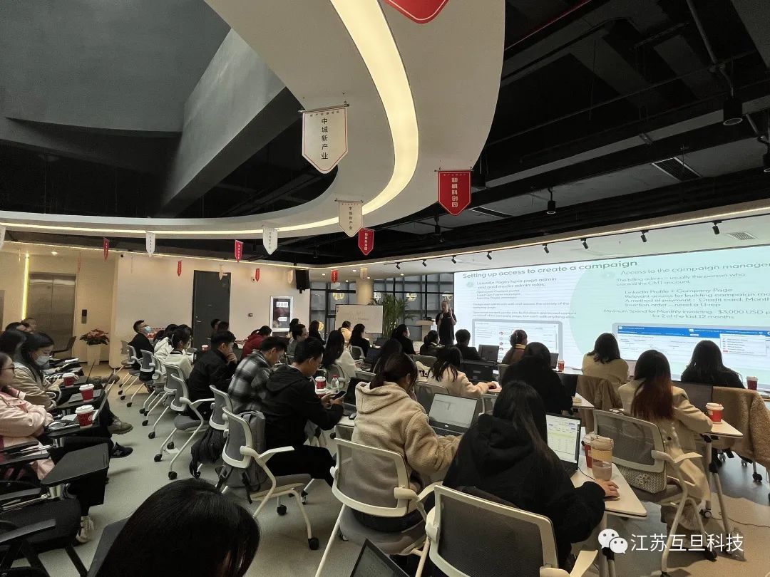 互旦科技是領英(中國)官方代理商之一,為了更好地提升自身領英營銷服務專業水平,進而賦能廣大外貿客戶做好出海營銷服務,2023年11月23日,領英(中國)連同互旦科技一起,舉辦了East China Certification Day的活動。來自領英(中國)的sky老師和李智老師從LinkedIn 廣告、報告和分析簡介、目標定位等板塊,為現場成員帶來了一場酣暢淋漓的講解,讓大家都收獲滿滿!
