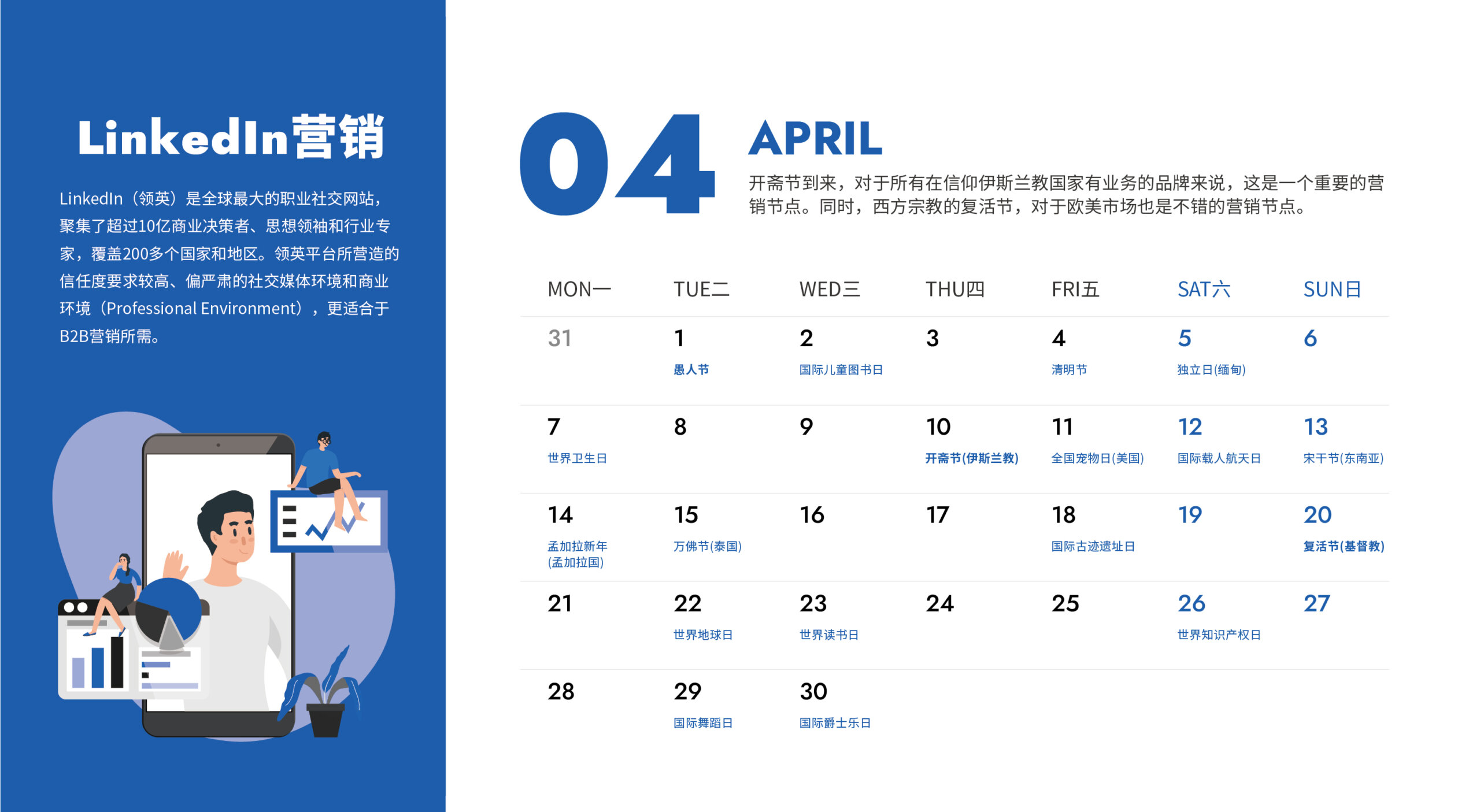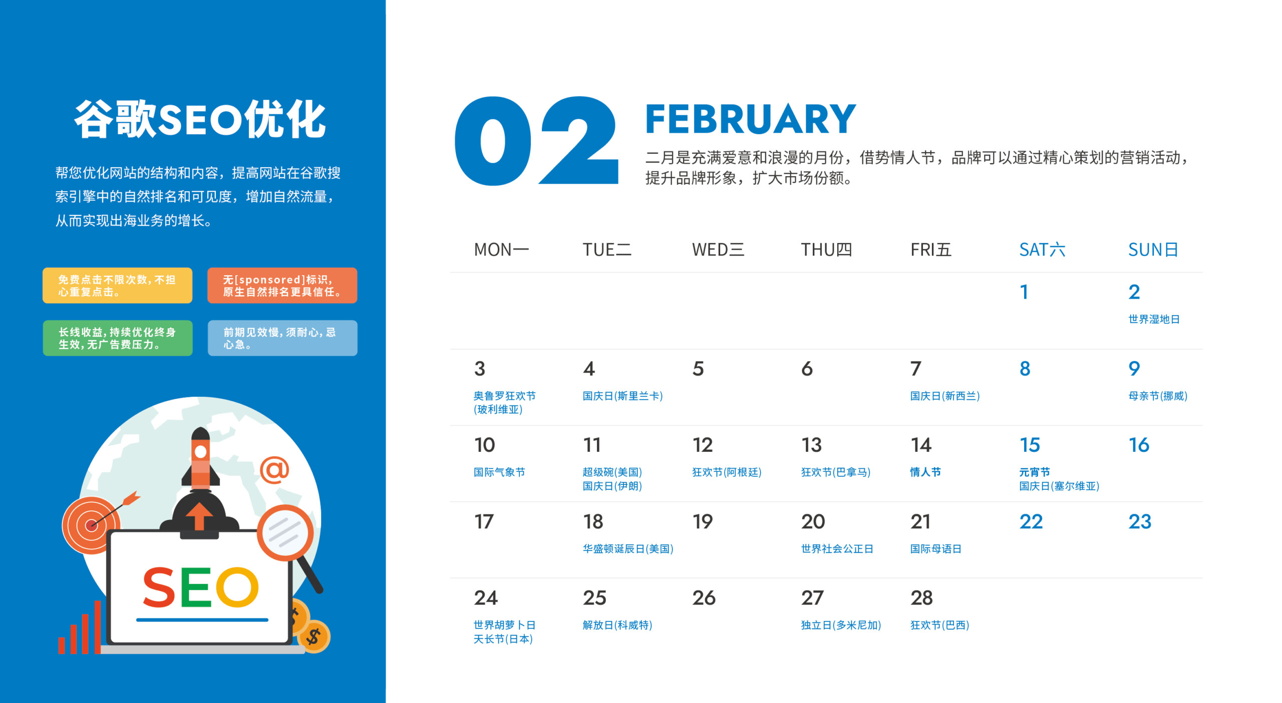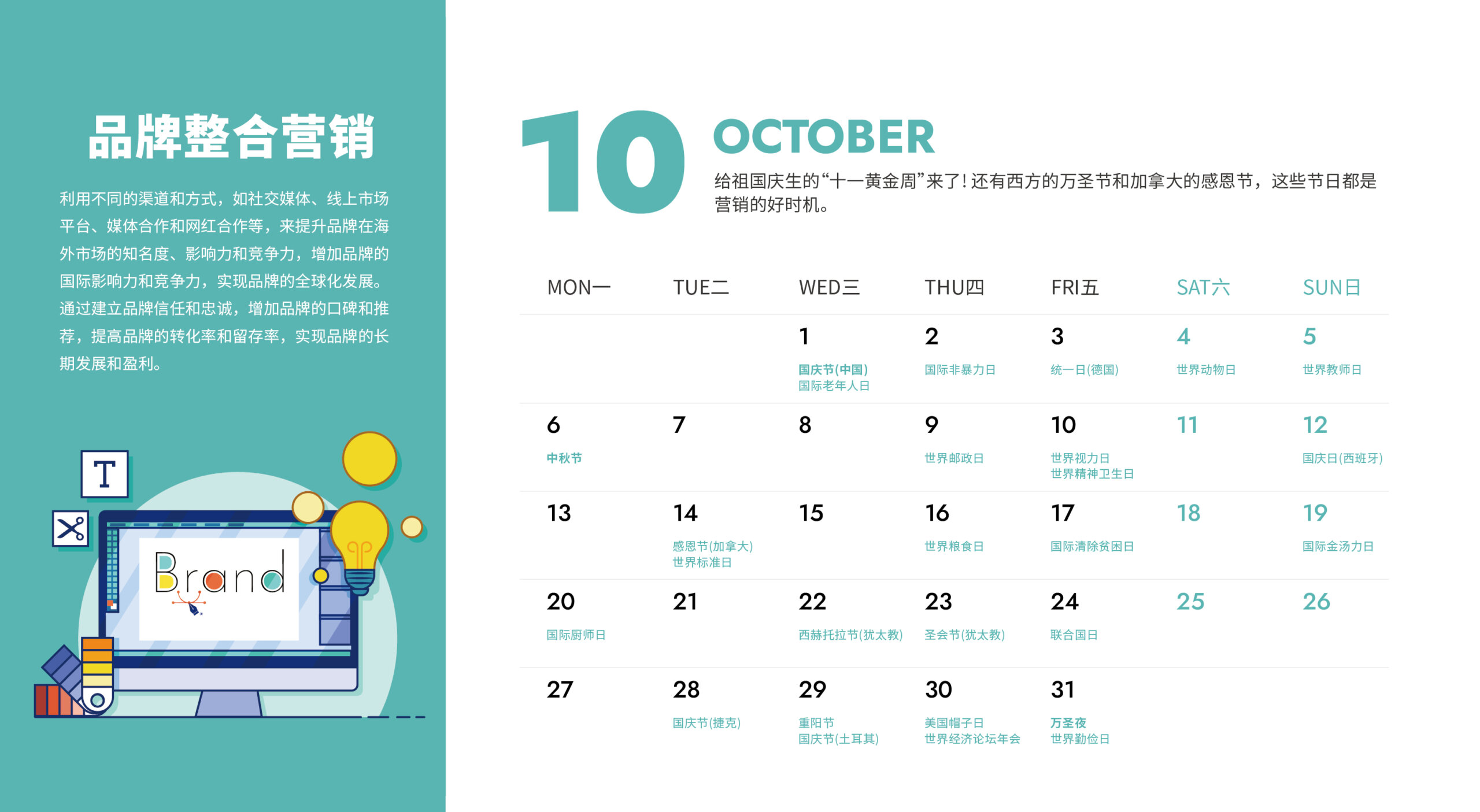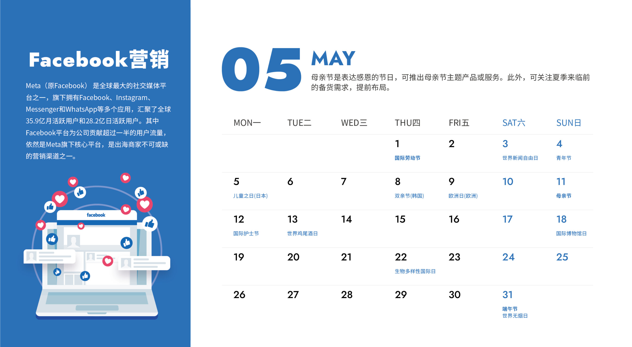 我們的《2025年度外貿營銷日歷》不僅是一份簡單的節日日期表,您可以把它當作一個全面的營銷伙伴。這份營銷日歷可以幫助您更及時、更全面、更深入地掌握海外市場的文化和消費習慣,增強品牌的親和力和市場競爭力。