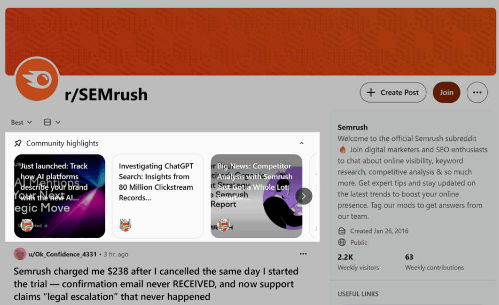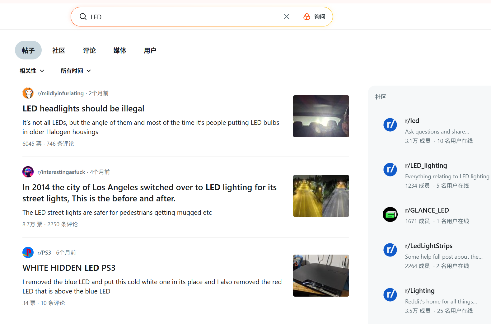 接下來,你可以通過在 Reddit 內搜索你的品牌名、主要競品名,或行業核心關鍵詞,觀察是否已經出現持續活躍的討論空間。比如,是否有多個與你行業相關的子版塊在穩定運轉,是否有用戶主動對產品進行對比、分析優缺點,是否能看到真實的使用問題、功能探討,甚至不那么“好聽”的吐槽內容。