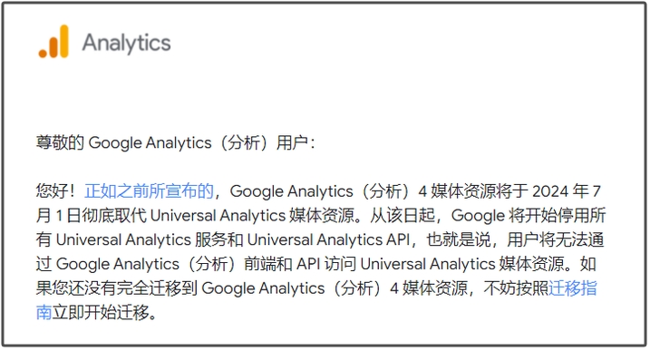 從2024年7月1日起,Universal Analytics完全停止服務,標志著Google Analytics 4(GA4)的全面接管。這一變動意味著所有原有的UA媒體資源將無法通過Google Analytics前端和API進行訪問。
