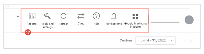 ④ 在查看客戶賬號時,您也可以點擊賬號菜單圖標 ,以展開廣告系列面板
