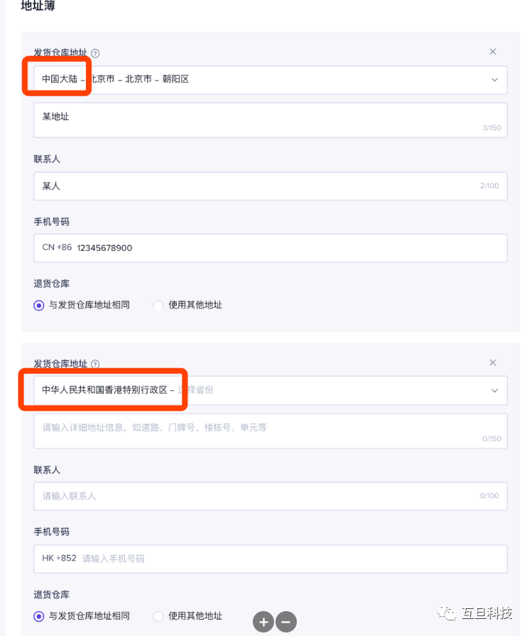 必須至少填寫其一,但中國大陸平臺發(fā)貨倉只有一個,中國香港平臺發(fā)貨倉只有一個
