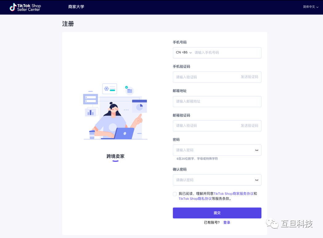 進入TikTok Shop跨境官網(wǎng)鏈接, 點擊“注冊成為TikTok Shop跨境賣家”啟動賬號注冊流程。?https://seller.tiktokglobalshop.com/account/welcome/