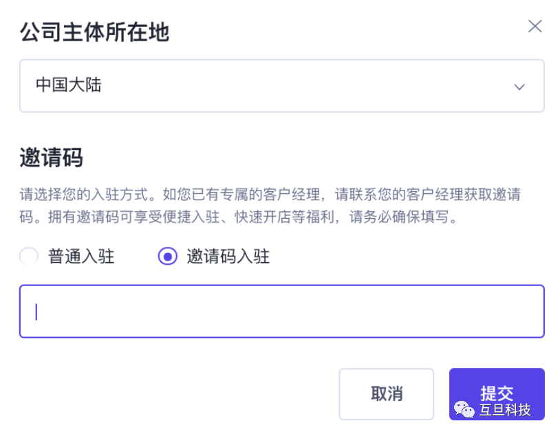 2. 邀請碼入駐:須聯(lián)系專屬客戶經(jīng)理獲取邀請碼,邀請碼將通過郵件形式發(fā)送。擁有邀請碼可享受便捷入駐、快速開店等福利;